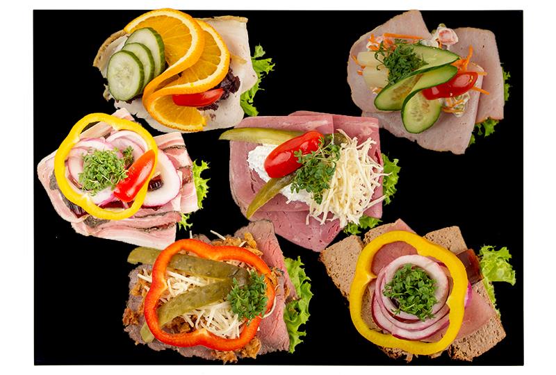 Vælg mellem 9 forskellige slags højtbelagt smørrebrød. - 3 stk. pålæg pr. smørrebrød.(forkortet indholds beskrivelse)