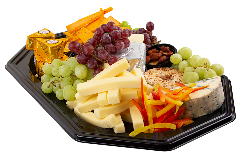 Lækkert ostebord med 6 forskellige udsøgte oste. Der medfølger diverse tilbehør.